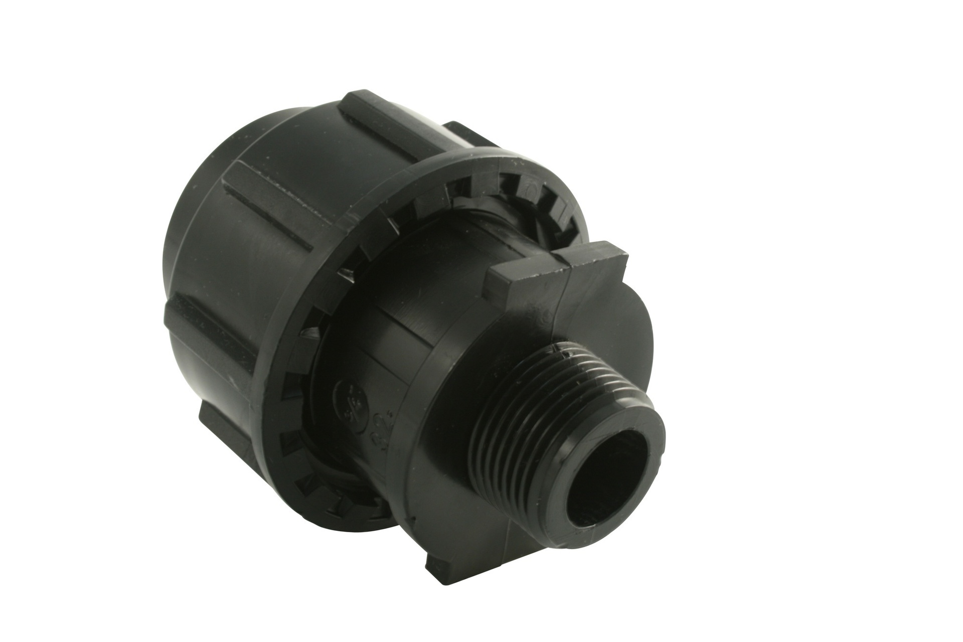 Anschlussverschraubung 32 mm x 3/4″ Außengewinde, als Übergang zu anderen Rohrarten, zum Anschluss von Absperrventilen und als Übergang zu Verbrauchern.