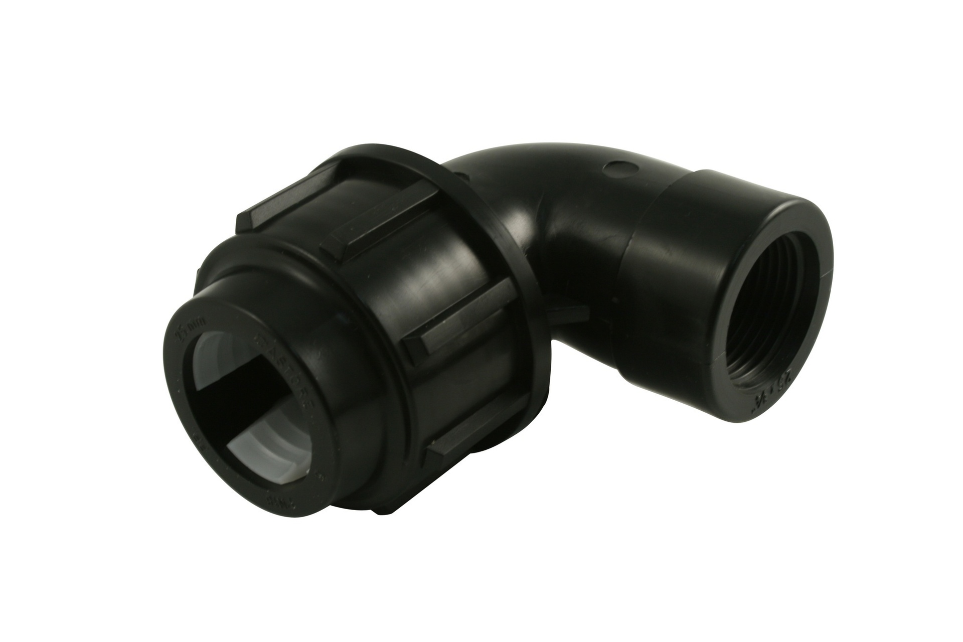 Zum Anschluss der Rohrleitung 20 mm an ein Fitting mit 1/2″ AG im 90° Winkel.