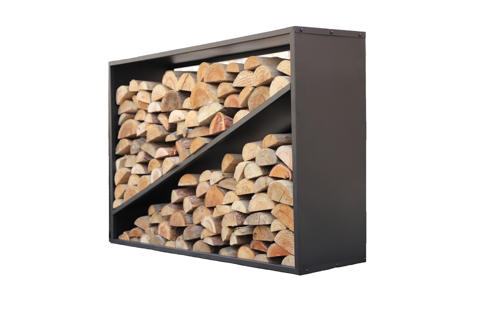 Wo auch immer Sie Ihr neues Kaminholzregal von Westmann aufstellen, dank der modernen und asymmetrischen Optik in Schwarz sind die Regale nicht nur praktisch, sondern auch wahre Hingucker, die Ihren Garten sofort verschönern und aufwerten. Der Rahmen aus beschichtetem Stahl sorgt für absolute Stabilität und Witterungsbeständigkeit. Um Ihr Kaminholz effektiv zu trocknen, ist das Regal zu zwei Seiten offen. So kann die Luft optimal zirkulieren und sorgt für eine optimale Trocknung. Stapeln Sie Ihr Kaminholz sauber und ordentlich auf — in Ihrem neuen Kaminholzregal von Westmann.