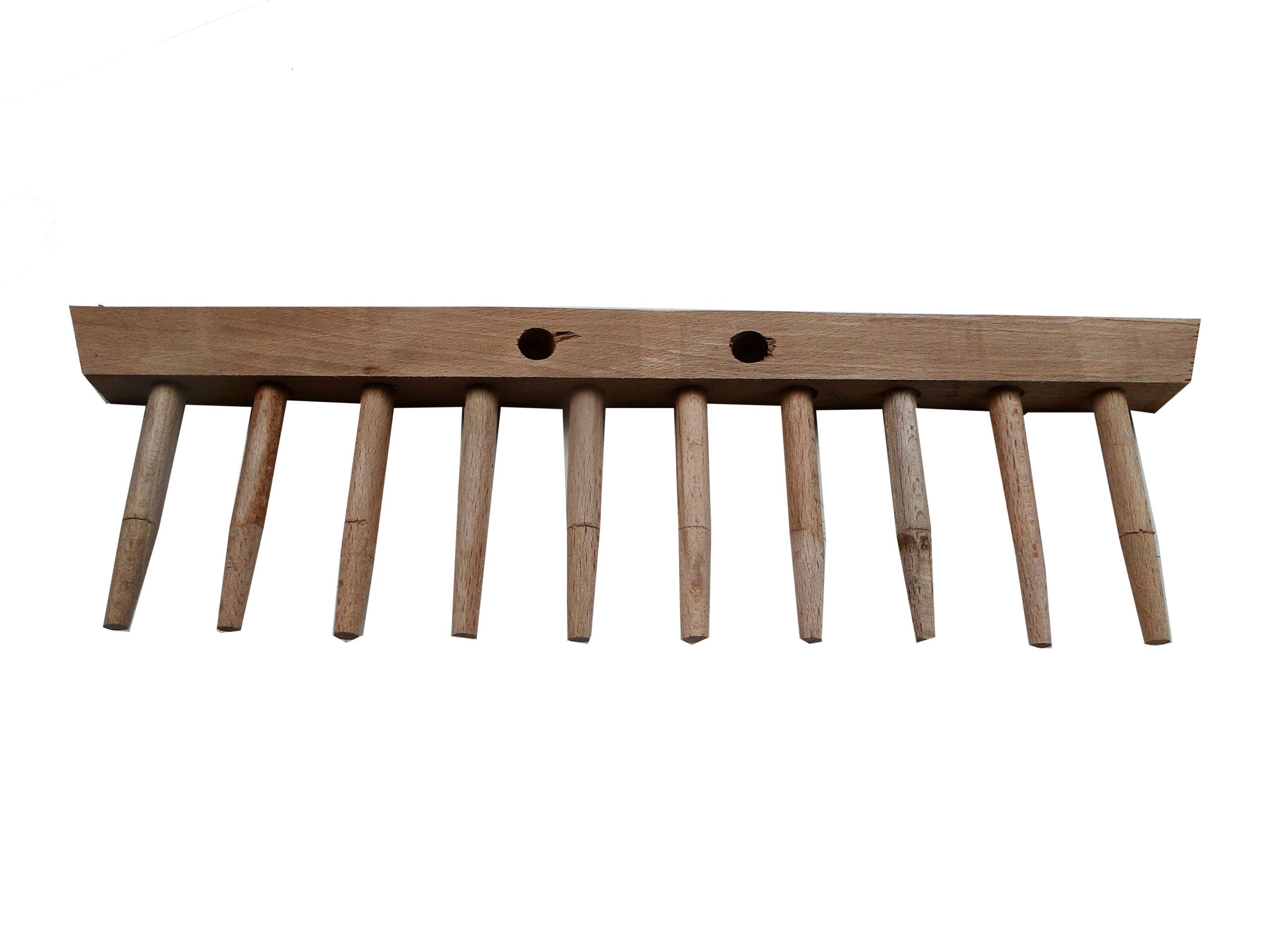 Der Rechenbalken wurde komplett aus Buche gefertigt. In Verbindung mit dem passenden Rechenstiel haben Sie im Handumdrehen einen Holzrechen geschaffen, mit dem Sie beispielsweise verwilderte oder verwucherte Gebiete bearbeiten können. Als Heuwender ist ein solcher Gabelrechen unverzichtbar. Heu ist ein wichtiges Raufutter für alle Arten von Haus- und Nutztieren. Das getrocknete Grünfutter sollte aus mehreren Arten von Gräsern bestehen. Gutes Heu erkennen Sie an der Griffigkeit und an einem hellgrünen Farbton. Außerdem sollte es einen aromatischen Duft versprühen und weich sein. Über gesundes Heu freut sich das kleine Meerschwein genauso wie das Pony. Unzählige Kinder besitzen Haustiere, vom kleinen Nager bis zum Pferd. Spielerisch können die Kinder an deren Versorgung herangezogen werden und mit einem Kinderrechen bereits beim Heuwenden behilflich sein.