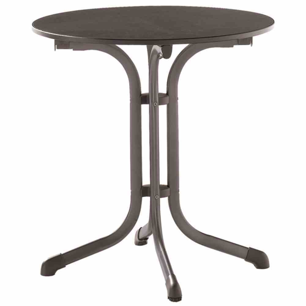 Klapptisch 3125-, Ø 68×72 cm, Gestell aus Stahl polyesterbeschichtet in eisengrau, Tischplatte aus vivodur® in anthrazit, 13mm stark, rund, höhenverstellbar, empfohlen für max. 4 Personen