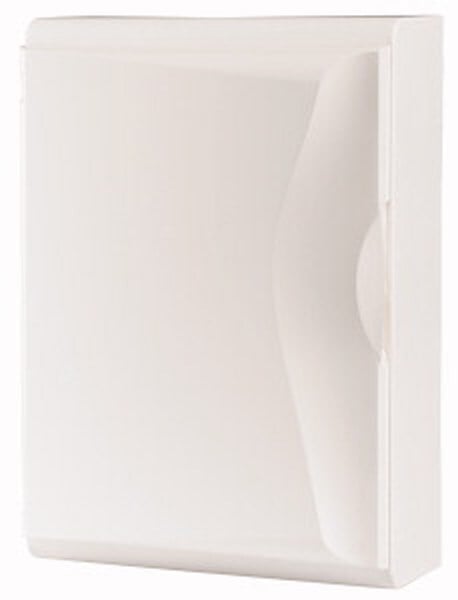Aufputz-Kleinverteiler mit Kunststofftür, stabilem DIN-Schienen-Traggerüst mit Längsverstrebungen.