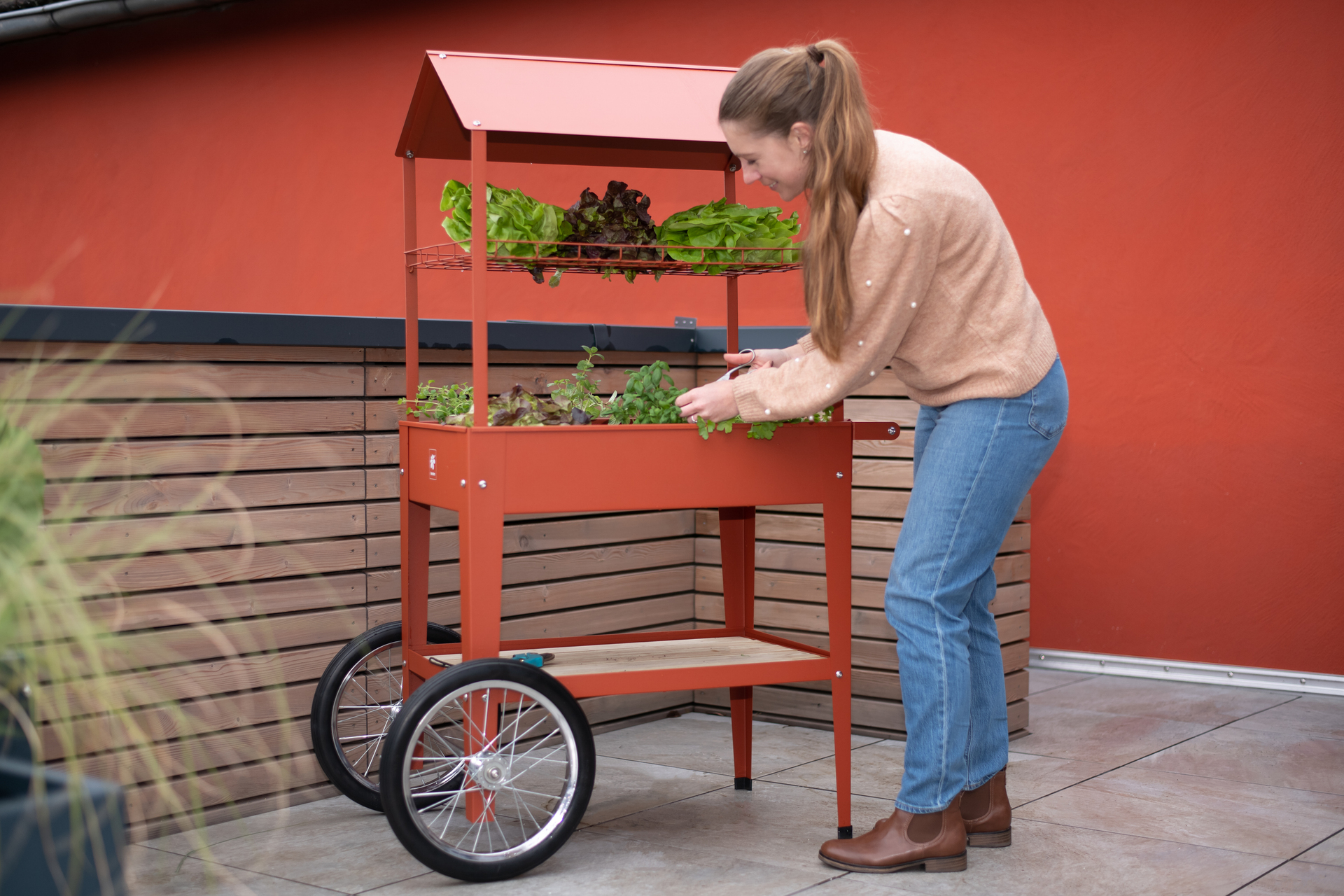 Die Bereifung garantiert einfachen Transport Ihres Hochbeetes. Die Kräuterfabrik Expert ist zudem mit einer hochmodernen Überdachung ausgestattet. Durch die optimale Höhe von 80 cm können Sie empfindliche Pflanzen vor Regen oder Schnee schützen.