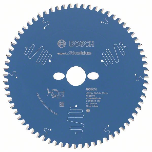 Das Expert für Aluminum Kreissägeblatt macht perfekte Schnitte in Aluminium. Einzigartige besonders harte Microteq-Zähne, die von Bosch intern produziert werden, werden aus sehr feinem Carbide-Korn hergestellt, wodurch die Lebensdauer und Leistung des Blatts maximiert wird. Diese Leistung wird durch die Schutzbeschichtung des Blatts unterstützt, die Korrosion verhindert und zuverlässiges Schneiden ermöglicht, während Reibung reduziert wird. Das Produkt ist mit Dämpfungsschlitzen für einen besonders ruhigen Lauf, deutlich weniger Geräusche und spürbar geringere Vibration ausgestattet. Verwenden Sie dieses Sägeblatt für Aluminium, Nichteisenmetalle, Kunststoff, Epoxidharz und Holz. Das Expert für Aluminium Kreissägeblatt verfügt über HLTCG-Zähne (High-Low Triple Chip Ground), wodurch das Blatt robust genug ist, um Aluminium zu schneiden. Außendurchmesser mm: 225, Bohrung mm: 30, Schnittbreite (b1) mm: 2,6, Stammblattstärke (b2) mm: 1,8, Schnittbreite (b1) mm / Stammblattstärke (b2) mm: 2,6/1,8, Zähnezahl: 68, ZahnForm: HLTCG, Max. Rotationsgeschwindigkeit (U/min): 8400, Schnittresultat: 4, NL/Durchmesser TKS: 2/7/42; 2/9,5/46,5; 2/9/46; 2/10/60, Spanwinkel ° w1: -5, Freiwinkel ° w2: 15