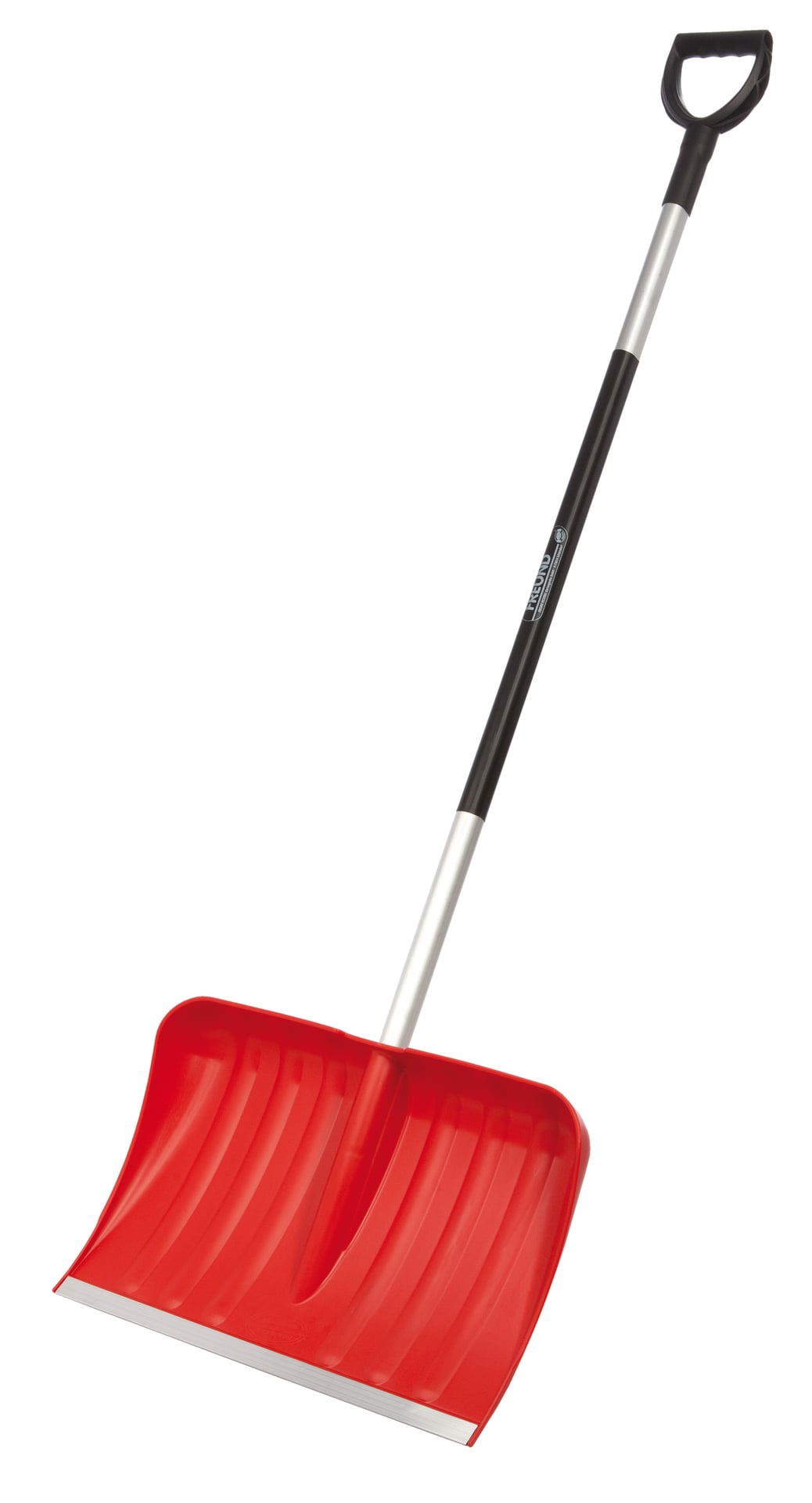 Blattmaße 54 x 35 cm, Blatt rippenverstärkt, mit hohem Seitenrand, bis -20°C kältebeständig, mit Aluminium-Profilkante und Aluminiumstiel mit D-Griff, Stiellänge ca. 125 cm, fertig montiert
