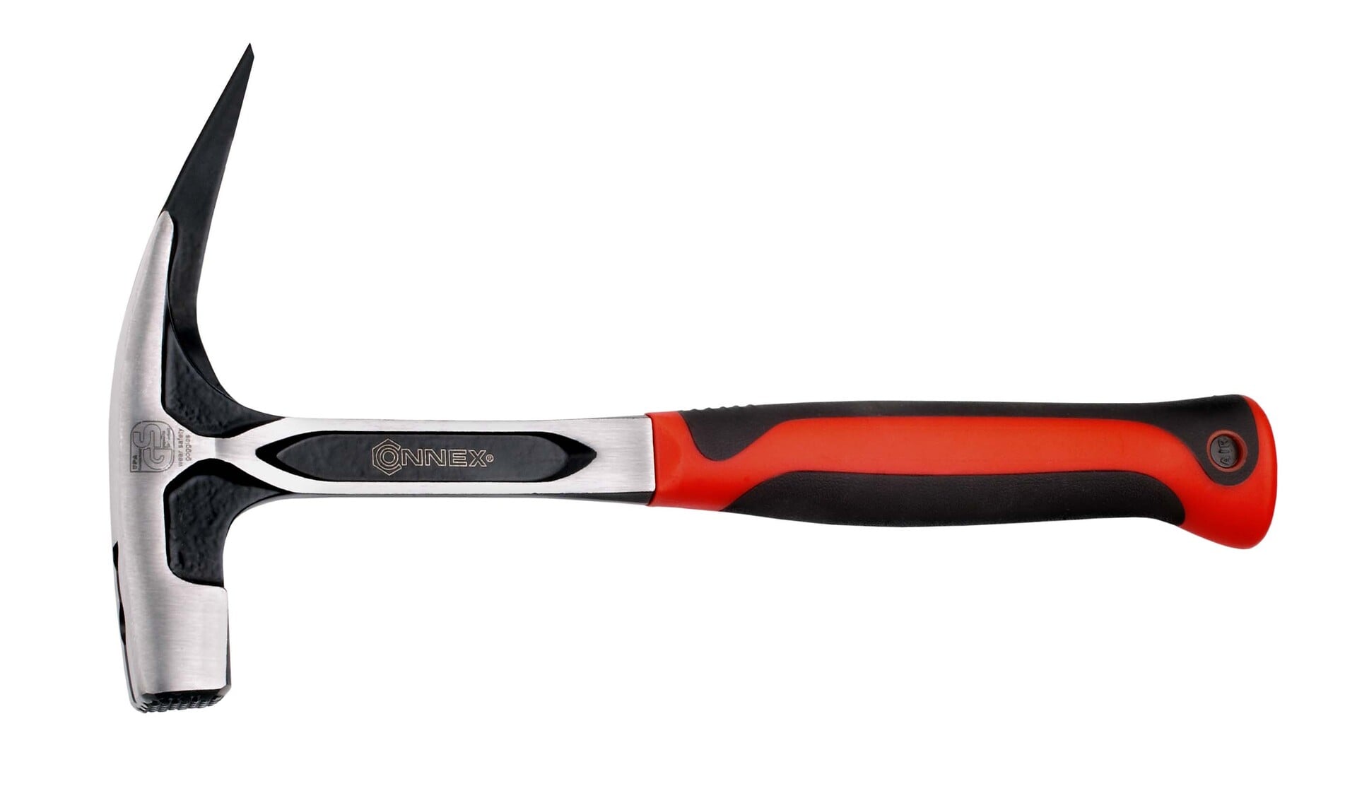 Der Latthammer von CONNEX wiegt 750 Gramm und ist aus einem Stück geschmiedet. Er hat einen Nagelhalter mit Magnet und einen Kunststoffgriff. Die Bahn ist geraut und er verfügt über einen Nagelzug mit Spitze. Mit VPA/GS Prüfung.