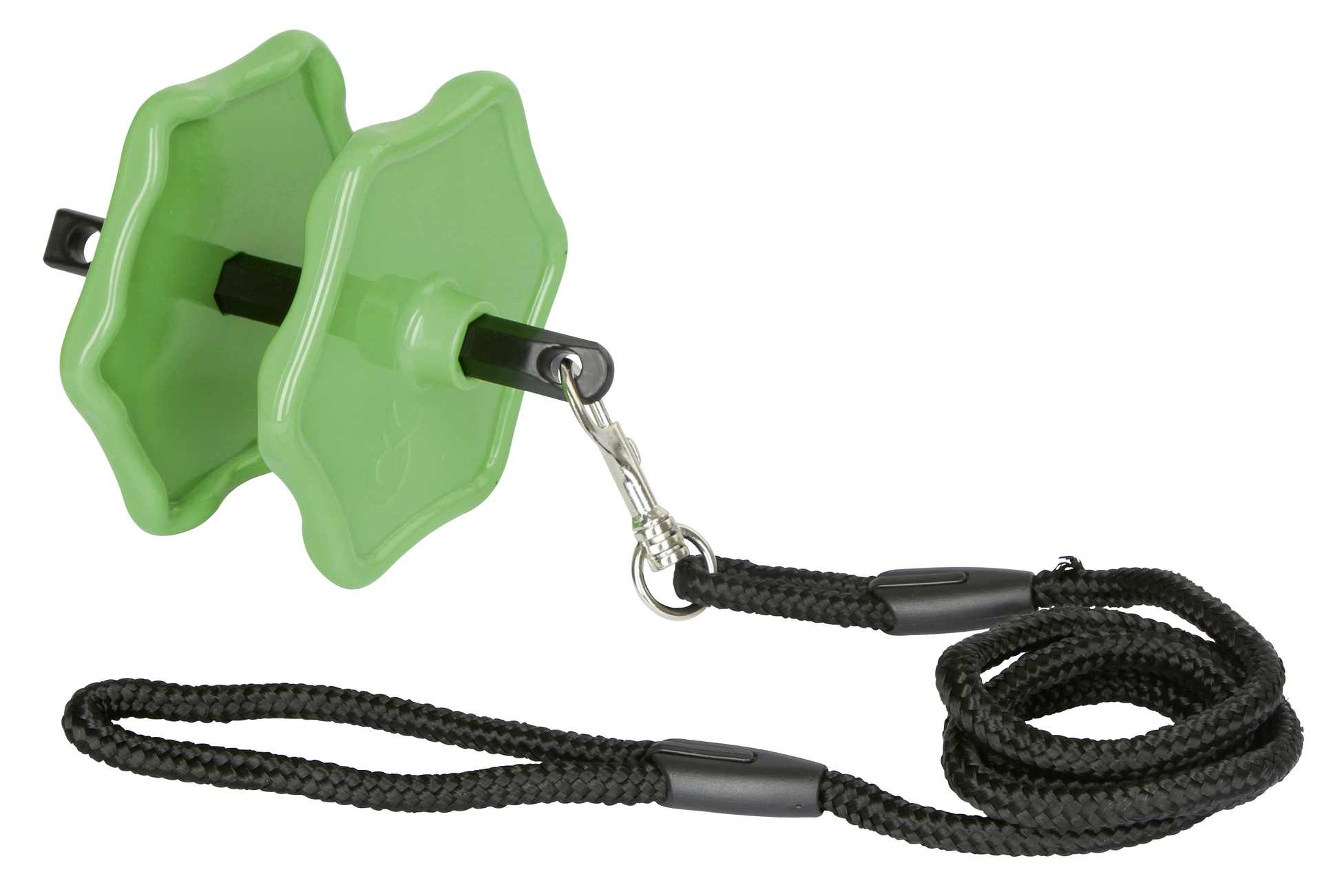 Ein Lecksteinhalter mit Seil. Dient auch zur Beschäftigung, da der Lecksteinhalter schwingt, wenn das Pferd am Leckstein leckt.
