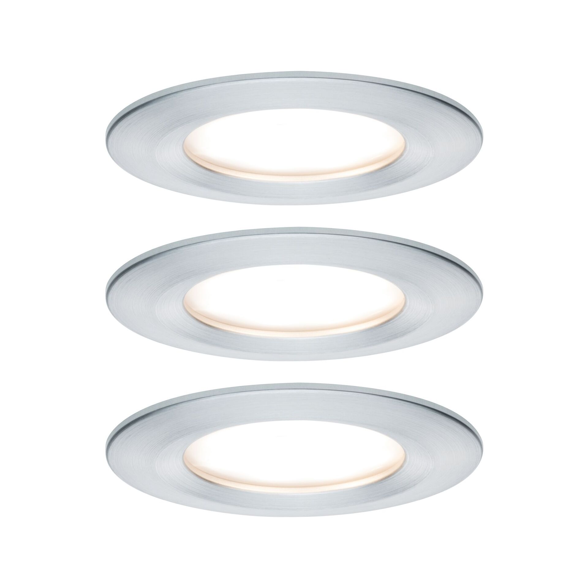 Nova Einbaustrahler 3x6W aus Alu in Alu gedreht, bieten Ihnen gutes Licht, stimmiges Design und hohe Energieeffizienz. Die puristische Optik wird nicht von Sprengringen gestört: Da das Leuchtmittel von hinten eingesetzt wird ist kein Sprengring notwendig. Dank 230V-Direktanschluss, können Sie die Leuchten ganz einfach uneingeschränkt miteinander verketten. Durch die unkomplizierte Fixierung mit Haltefedern, bleibt die Zimmerdecke auch nach mehrmaligem Ein- und Ausbau unbeschädigt. Im Lieferumfang sind effiziente und langlebige Coin LED-Leuchtmittel enthalten, die mit ihrem warmweißen Licht für ein stimmungsvolles Ambiente sorgen.
