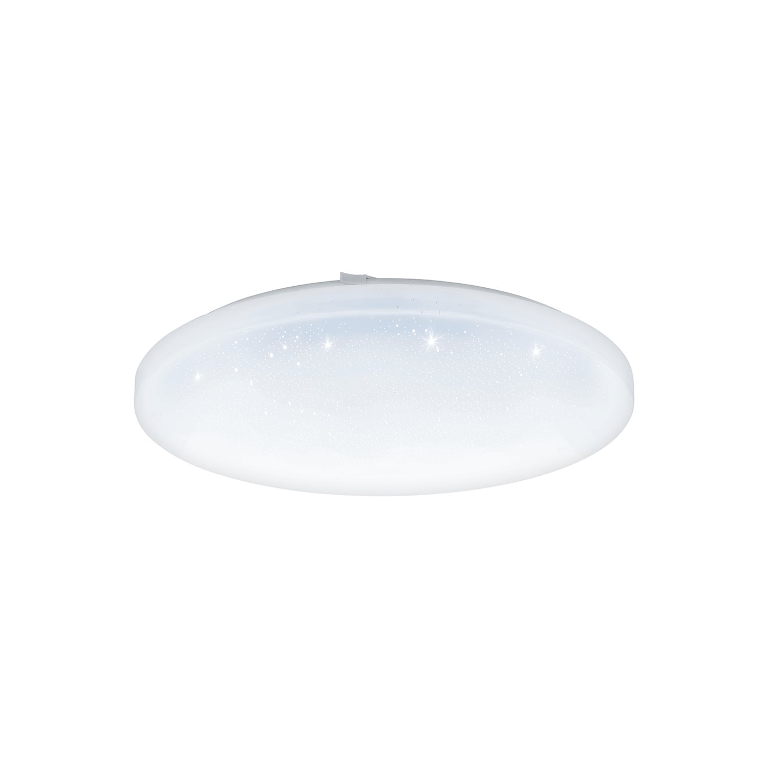 Die LED Deckenleuchte FRANIA-S ist aus einer runden, weißen Kunststoff-Abdeckung und einem weißen Metall-Rückteil gefertigt. Bei eingeschalteter Leuchte entsteht durch das Cover ein funkelndes Erscheinungsbild, das an einen Sternenhimmel erinnert. Die integrierten LEDs spenden angenehmes warmweißes Licht. Besonders gut lässt sich die Deckenlampe mit einem Durchmesser von 43 cm in modern eingerichteten Wohnräumen wie im Wohnzimmer, Schlafzimmer, Flur oder Kinderzimmer integrieren.