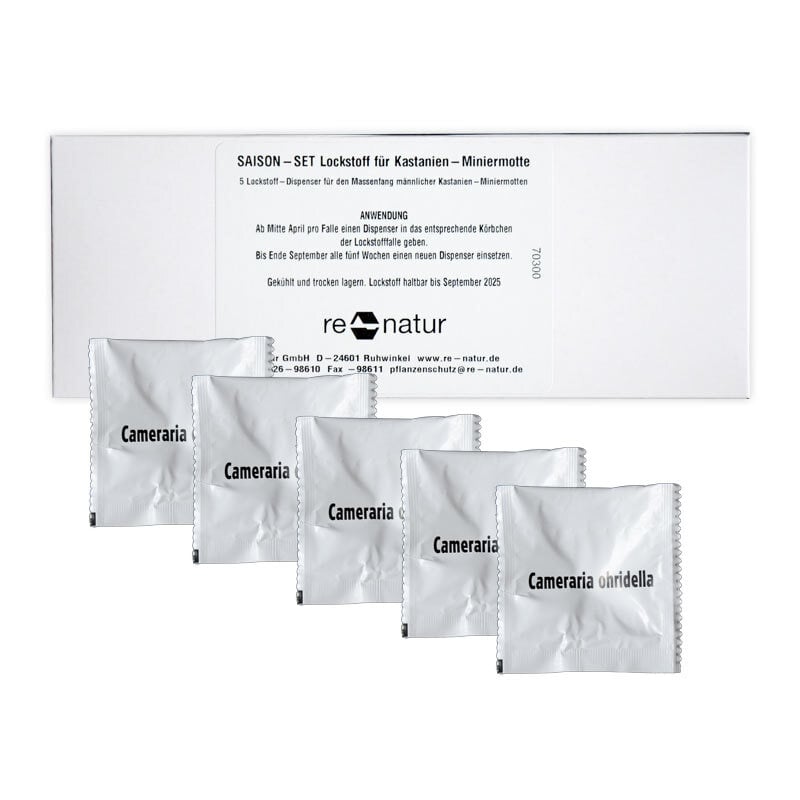 5 Lockstoffdispenser zum Fang von Kastanienminiermotten-Männchen in Trichterfallen oder Deltafalle.