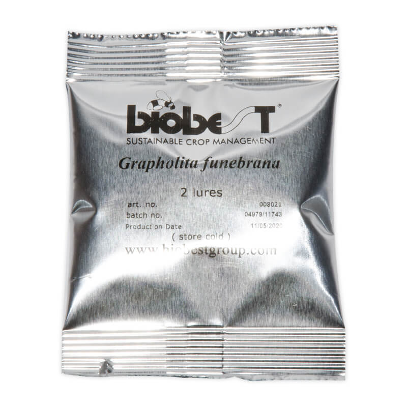 Lockstoff-Dispenser zum Fang von männlichen Pflaumenwicklern in Trichter- oder Deltafallen.