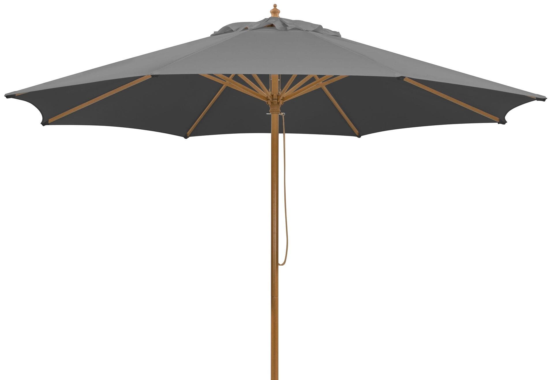 Außerdem verfügt dieser Sonnenschirm über einen doppelten Seilzug, womit er geöffnet bzw. geschlossen werden kann, sowie einen Sicherungssplint.