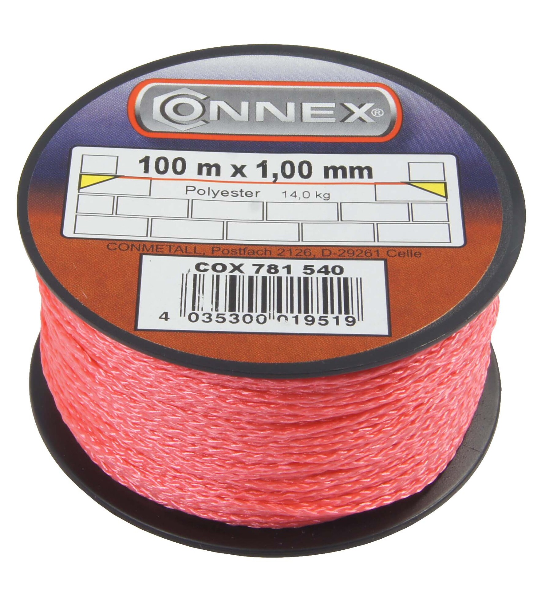 Diese Maurerschnur von CONNEX ist aus Polyethylen und auf Spulen. Made in Germany.