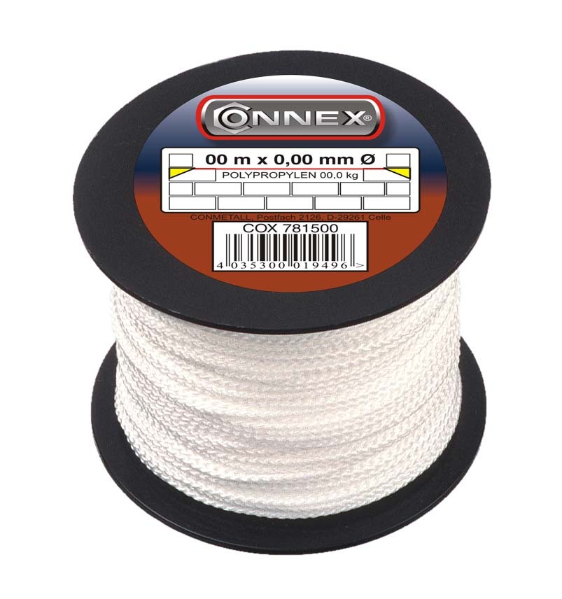 Diese Maurerschnur von CONNEX ist 100 m lang. Sie ist universal aus Polypropylen, geflochten und auf Spulen. Made in Germany.