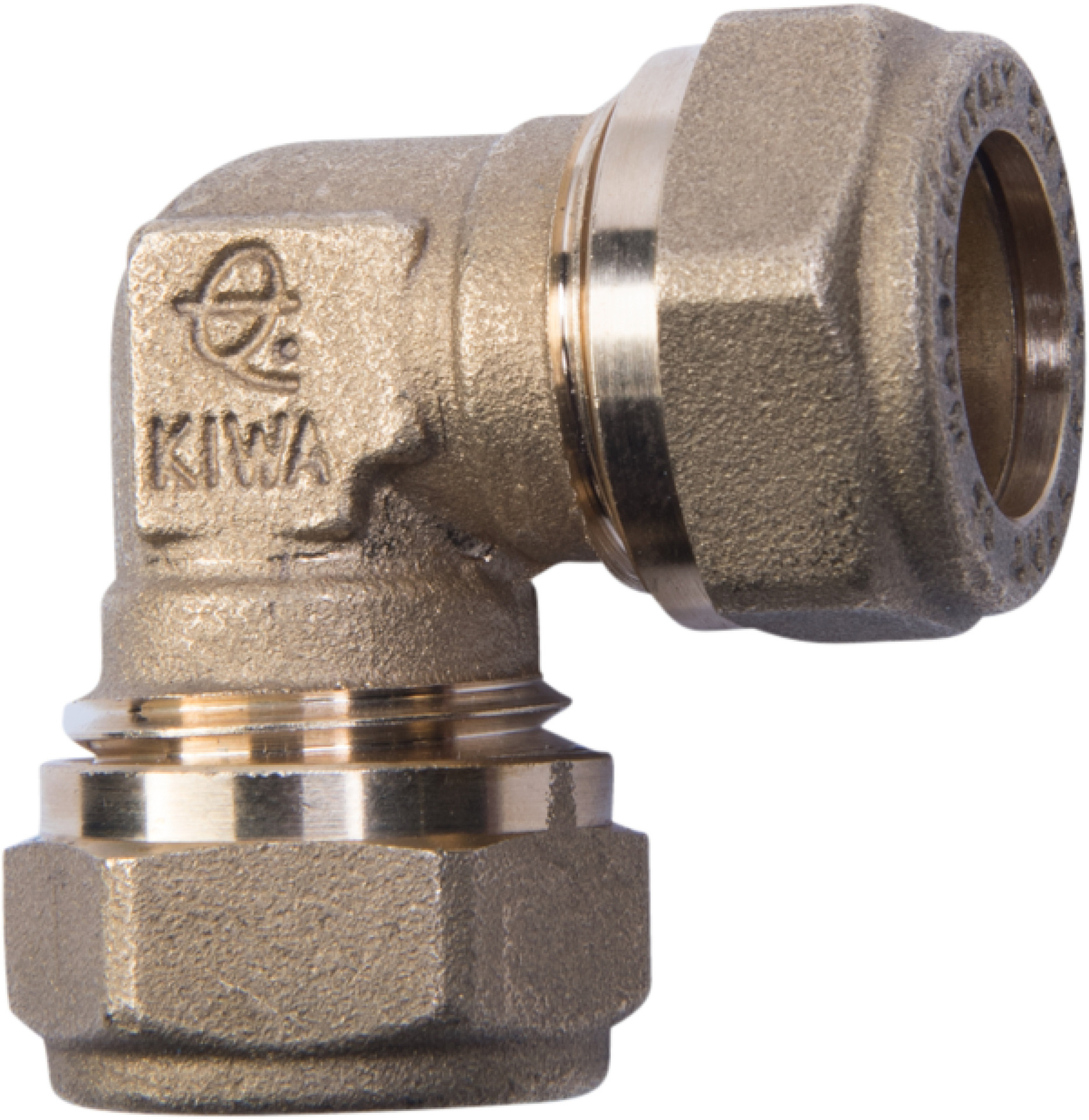 Klemmring Winkel 90° Messing, mit 2 Muffen, nach DVGW zertifiziert, Betriebstemperatur -20°C bis max. 200°C, für Solaranlagen geeignet, Betriebsdruck max. 30 bar, Unterputz verlegbar, auch für Druckluft geeignet, ø 15 mm