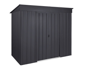 Das Premiumgerätehaus „SKILLION“ fügt sich mit seinen kleinen Grundflächen leicht auch in kleinere Gärten, auch direkt an der Hauswand ein. Bei einer Deckenhöhe zwischen 1,75 und 1,78m bietet es dank seines Pultdaches zudem eine gleichbleibende Höhe im gesamten Innenraum. Breite Doppelschiebetüren und ein Grundriss im Querformat gewähren mühelosen Zugang und Zugriff von außen. Feuerverzinkter Stahl in feinrippigen Paneelen und innen verstärkte Ecken sorgen für überlegene Stabilität im Vergleich zu üblichen Stahlblechhäusern. Auch die mehrstufige Einbrennlackierung und der weitgehende Verzicht auf Kleinteile aus Kunststoff, so z.B. durch gestanzte Lüftungsschlitze, zeugen von durchdachtem Design.