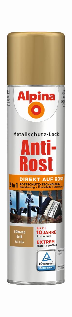 Starke Verbindung: Alpina Anti-Rost Metallschutz-Lack vereint eine ausgezeichnet haftende Grundierung, wirkungsvollen Langzeit-Korrosionsschutz und eine dickschichtige Lackierung. Damit verringert sich der Zeitaufwand der Verarbeitung deutlich.