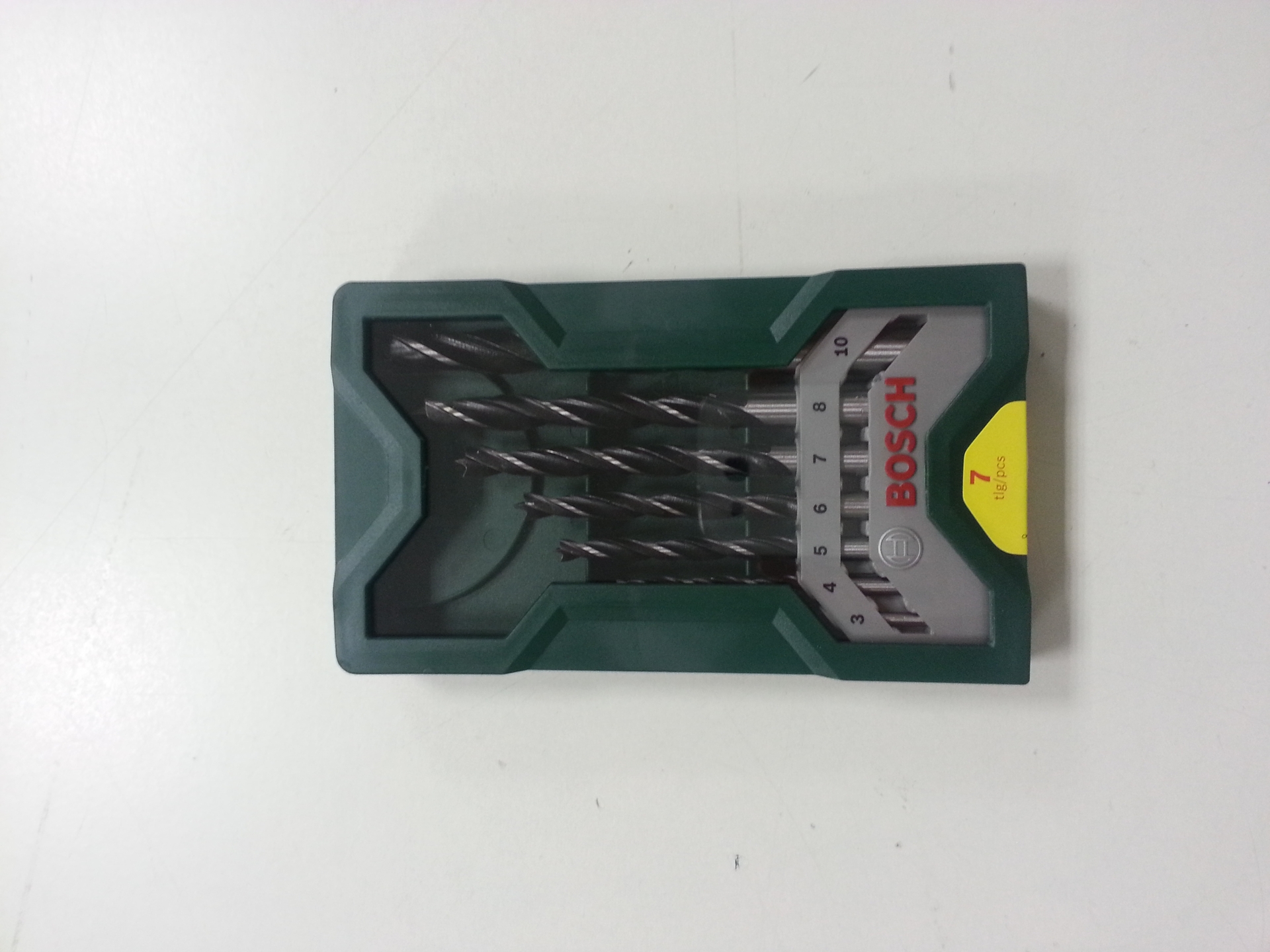Mini-X-Line-Holzbohrer-Set, 7-teilig. Für sauberes und ausrissfreies Bohren. Ein nach eigener, strenger Werksnorm gefertigter Holzspiralbohrer mit Zentrierspitze und Schulterschneider für präzise Bohrungen. Geeignet für Weich- und Hartholz. Gehört in jede Werkzeugkiste: Holzbohren leicht gemacht! Diese Grundausstattung von 7 Holzbohrern ermöglicht sauberes und exaktes Bohren in Hart- und Weichholz. 7 Holzbohrer mit Durchmesser: 3 – 10 mm mit Zentrierspitze für punktgenaues Anbohren. Praktische Bosch Mini-X-Line Box sorgt für Ordnung und Übersichtlichkeit. Für alle Elektrowerkzeugmarken geeignet. Inhalt des Sets: 7 Holzbohrer mit Durchmesser: 3 / 4 / 5 / 6 / 7 / 8 / 10 mm. Sicherheitshinweis: Bei Gebrauch bitte Schutzbrille und Staubschutzmaske tragen.