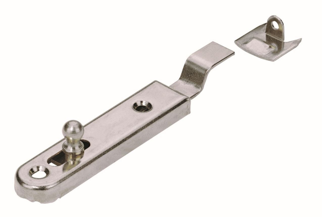 Möbelriegel zum Anschrauben mit gekröpfter Schließmechanik, vernickelt