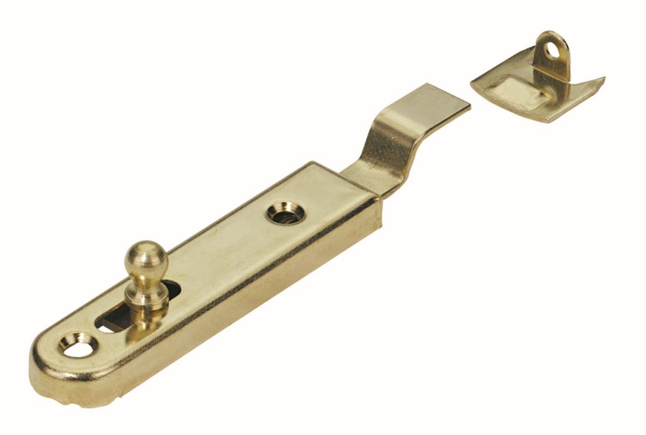 Möbelriegel zum Anschrauben mit gekröpfter Schließmechanik, vermessingt