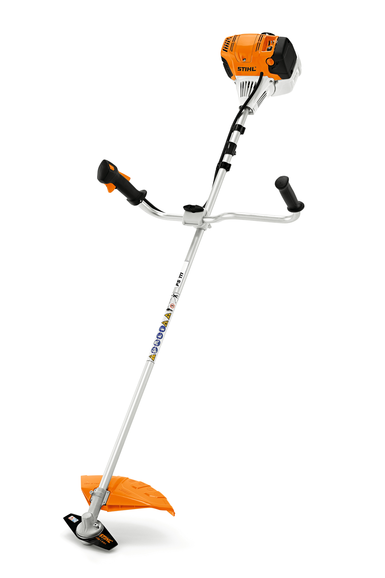 Leistungsstarke Motorsense für Flächenarbeiten in zähem Gras. Vereinfachter Startablauf für komfortables Starten, Zweihandgriff, Bediengriff mit Stopptaster, 4-MIXMotor mit vergrößertem Tank für längere Laufzeiten, starre Antriebswelle, Doppelschultergurt.