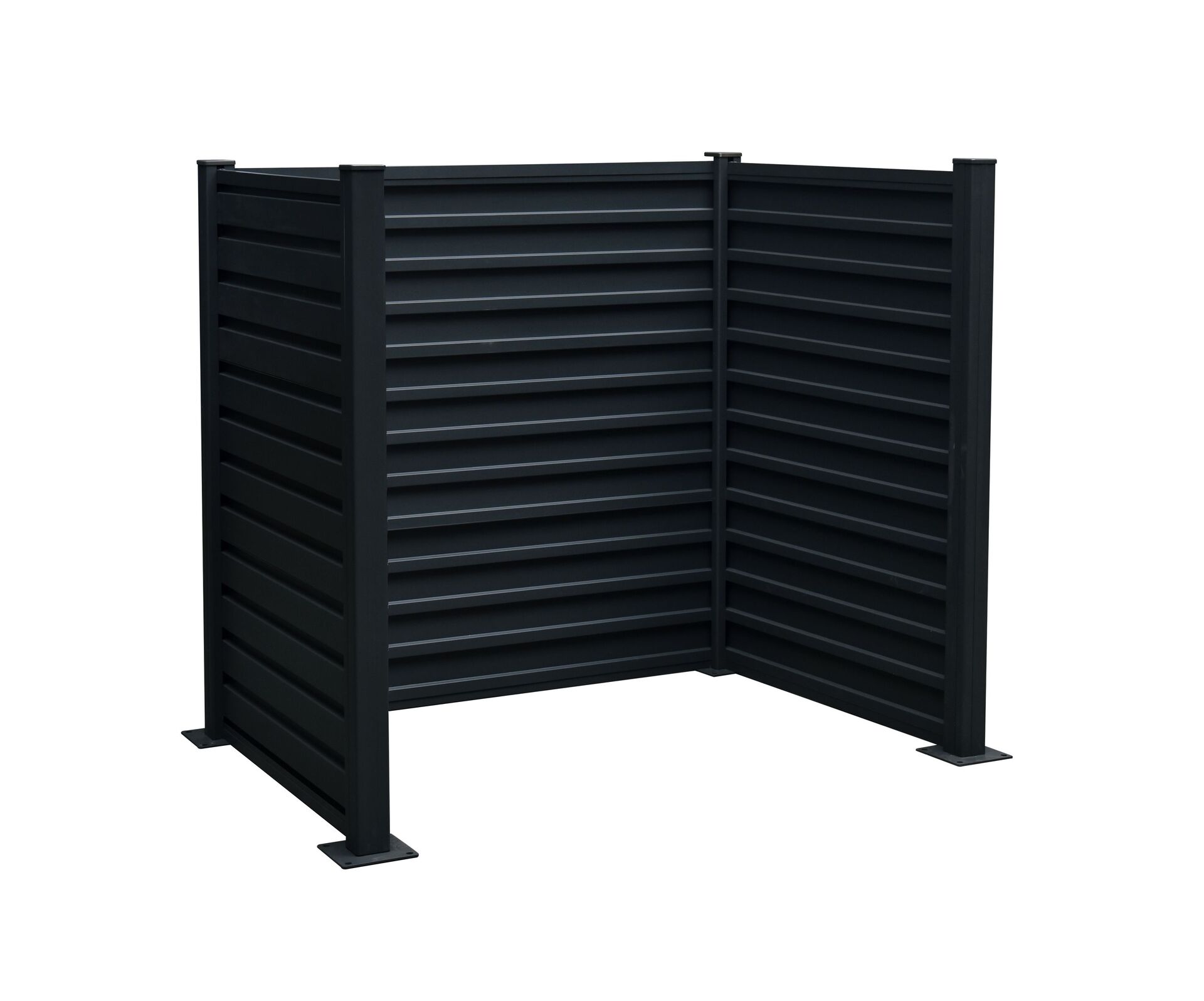 Die Mülleimer-Einfassung besteht aus einem stabilen Stahlblech-Wand-Element und Pfosten aus Aluminium, welche pulverbeschichtet sind. In verschiedenen Größen erhältlich. Je nach Größe ist die praktische Einfassung ausreichend für 2 bis 3 Mülleimer à 240 Liter. Inklusive Pfostenbodenplatten aus Stahl.