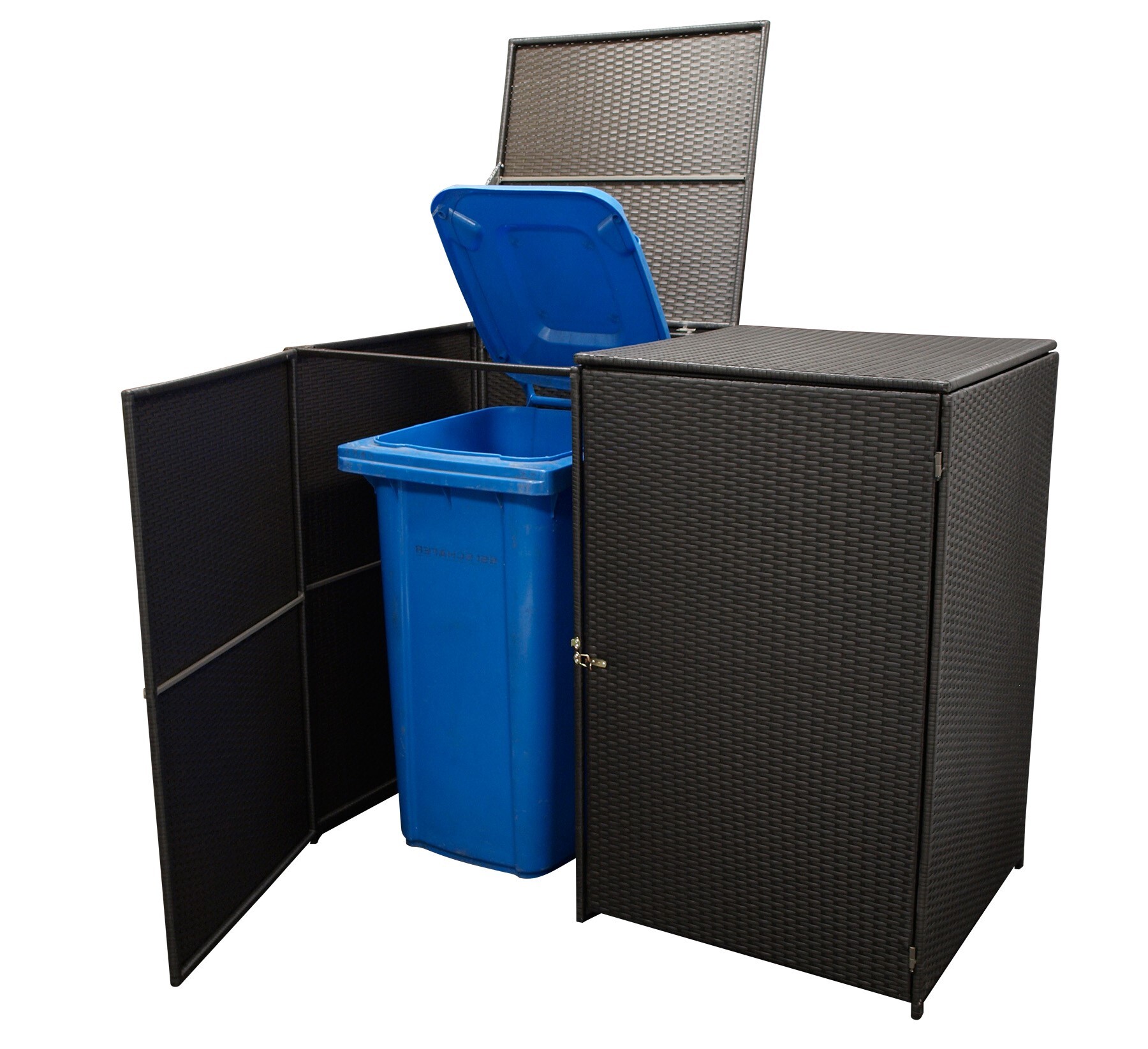 Mülltonnenbox für 2 Tonnen bis 240L. Aus Stahl und Polyrattan mocca.