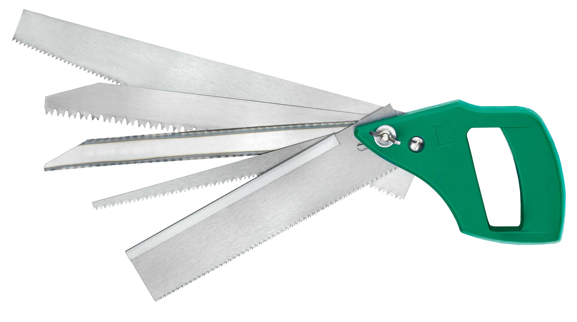 Die Nestsäge von CONNEX hat 5 verschiedene, austauschbare Sägeblätter und einen Kunststoffgriff. Die Blätter sind jeweils geschärft und nachschärfbar.