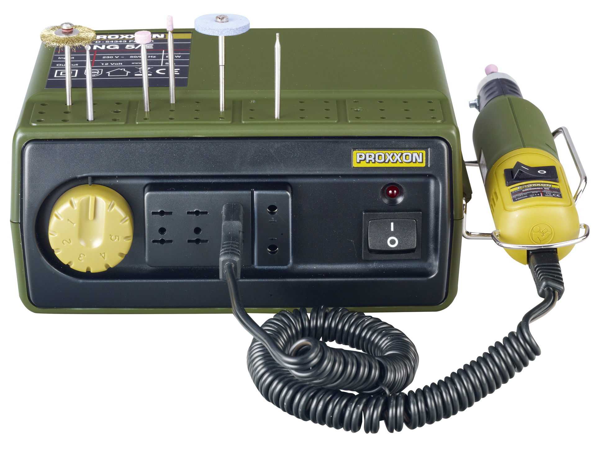 Das Netzgerät NG 5/E von PROXXON verfügt über eine stufenlose Drehzahlregelung mit Feedback-Effekt für optimale Drehzahlen und viel Drehmoment im unteren Bereich.