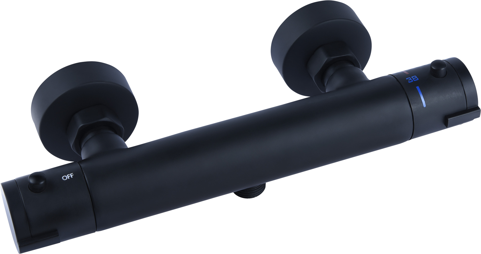 Brause Thermostat-Armatur NOIR ROUND Hergestellt aus Messing gemäß aktueller DIN, Brauseabgang ½“, Ohne Schlauchbrausegarnitur, Temperaturwahlgriff mit Sicherheitssperre bei 38°C, Leicht auswechselbares Thermoelement, Inkl. allem Montagezubehör, Farbe: Schwarz