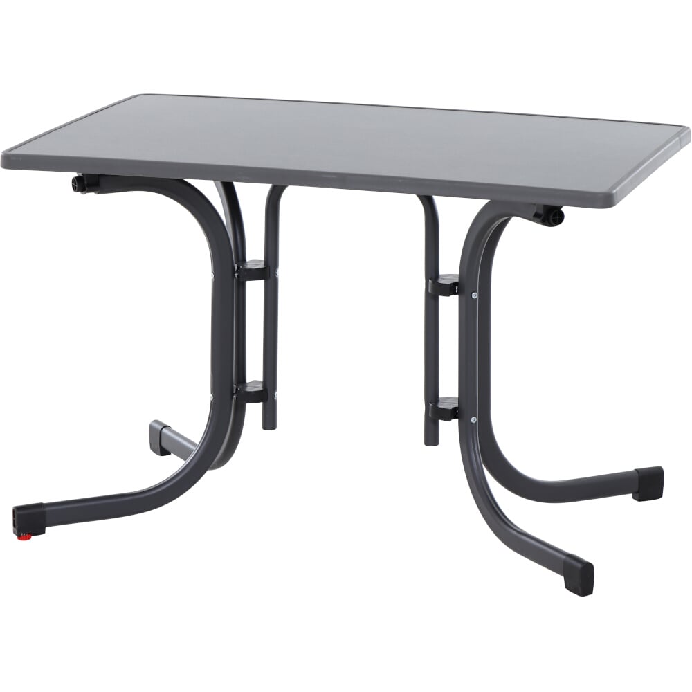 – Breite: 70, – Farbe: matt-anthrazit, – Gewicht: 15,2, – Höhe: 71, – Länge: 110, – Material: Stahl, – Produktart: Gartentisch