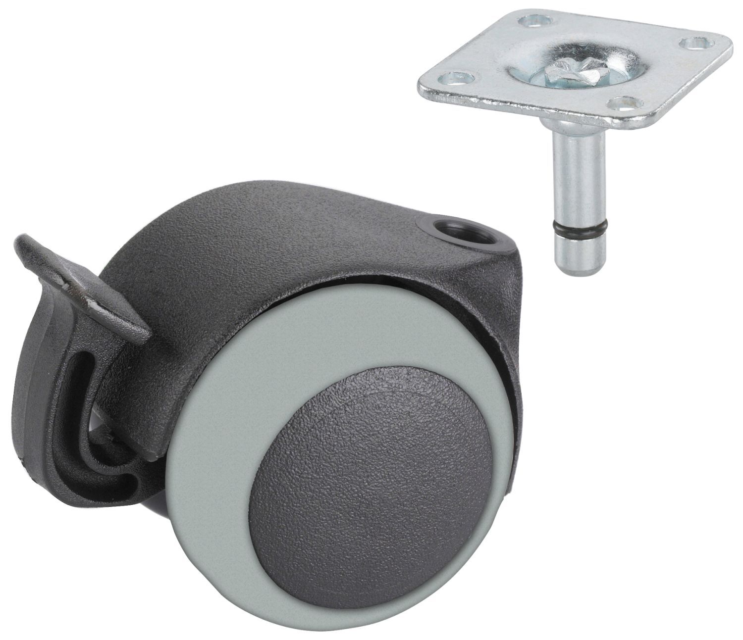 Diese Rollen haben eine weiche Lauffläche aus TPE und sind daher für den Einsatz auf empfindlichen Böden (z.B. Parkett, Laminat) geeignet. Bodenverträglichkeit vor Anwendung prüfen!