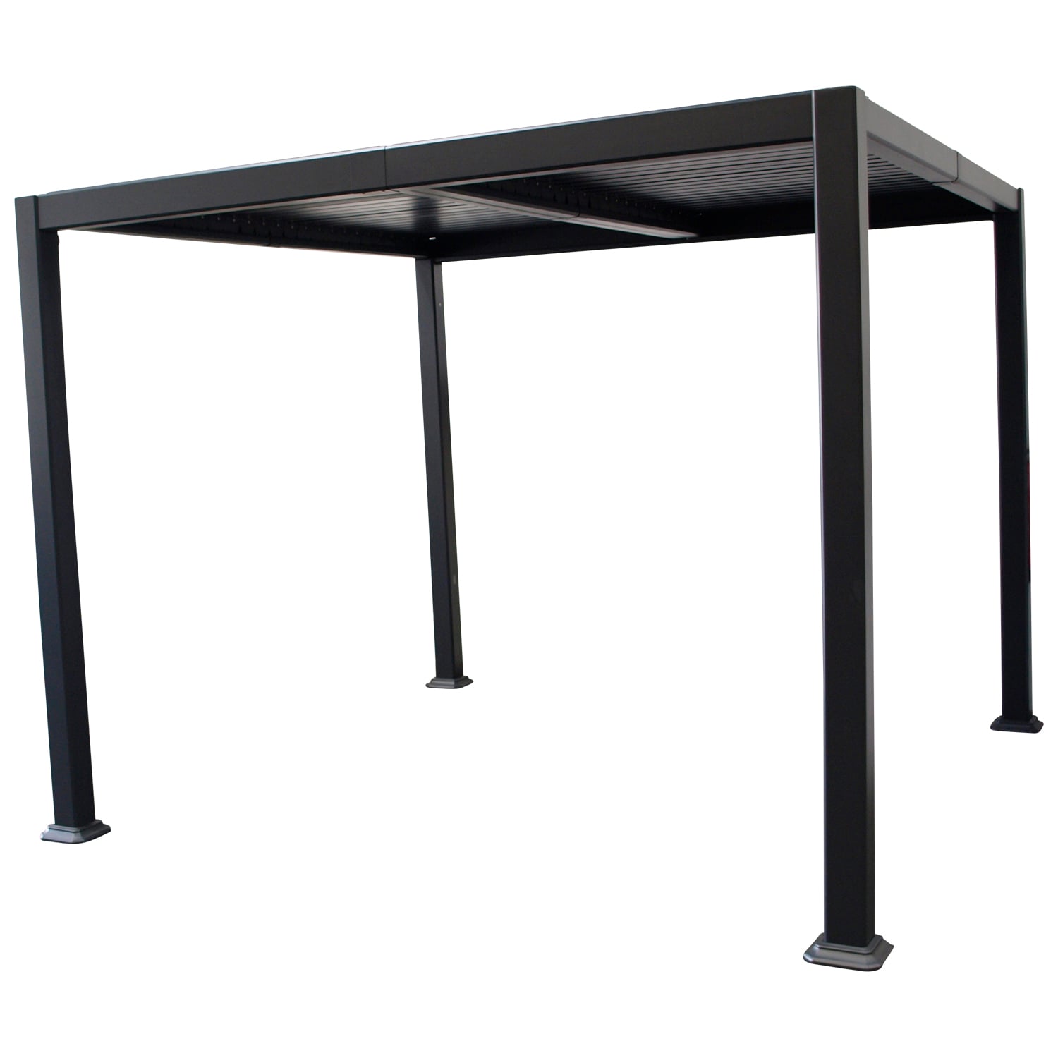 Pavillon Baracoa 3×3 Meter, Aluminium dunkelgrau, Dach bestehend aus verstellbaren Lamellen. Lieferung mit Kurbel.