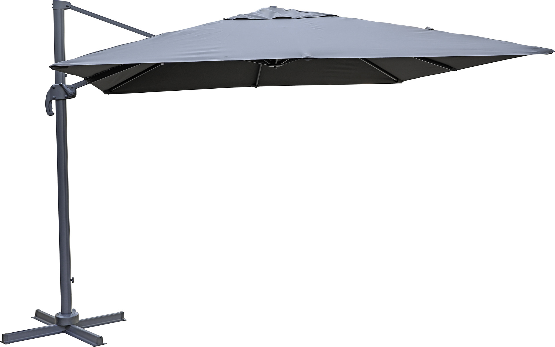 Der Pendelschirm Paros hat einen rechteckigen Polyesterbezug und ist dreh- sowie neigbar. Das 250g Polyestergewebe ist mit UV Schutz 80+ ausgestattet.