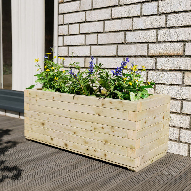 Pflanzkasten PAUL – rechteckig, robust und vielseitig Ideal für Garten, Balkon oder Terrasse Der Pflanzkasten PAUL aus druckimprägniertem Kiefer- und Fichtenholz ist die perfekte Lösung für alle, die ihren Außenbereich mit Blumen, Kräutern oder kleinen Sträuchern verschönern möchten. Mit einer Größe von 80 x 40 x 35 cm bietet der rechteckige Kasten ausreichend Platz für individuelle Bepflanzungen. Langlebig durch hochwertige Verarbeitung Das grün druckimprägnierte Holz schützt zuverlässig vor Witterungseinflüssen und sorgt für eine lange Lebensdauer. Die stabilen Kanthölzer mit den Maßen 45 x 45 mm verleihen dem Pflanzkasten nicht nur eine solide Struktur, sondern auch eine ansprechende Optik. Sofort einsatzbereit mit Pflanzfolie Im Lieferumfang ist eine passende Pflanzfolie enthalten, die das Bepflanzen direkt nach dem Aufstellen erleichtert. Die rechteckige Form fügt sich harmonisch in verschiedene Garten- oder Terrassengestaltungen ein. Kombinierbar mit Rankgittern Der Pflanzkasten PAUL kann mit den Rankgittern JAN und TINI kombiniert werden. So entsteht im Handumdrehen eine attraktive Kletterhilfe für Rankpflanzen oder ein Sichtschutz mit natürlichem Grün. Technische Details im Überblick: Material: Kiefer/Fichte, druckimprägniert grün Maße: 80 x 40 x 35 cm (B x T x H) Kanthölzer: 45 x 45 mm inklusive Pflanzfolie rechteckige Ausführung kombinierbar mit Rankgittern JAN und TINI