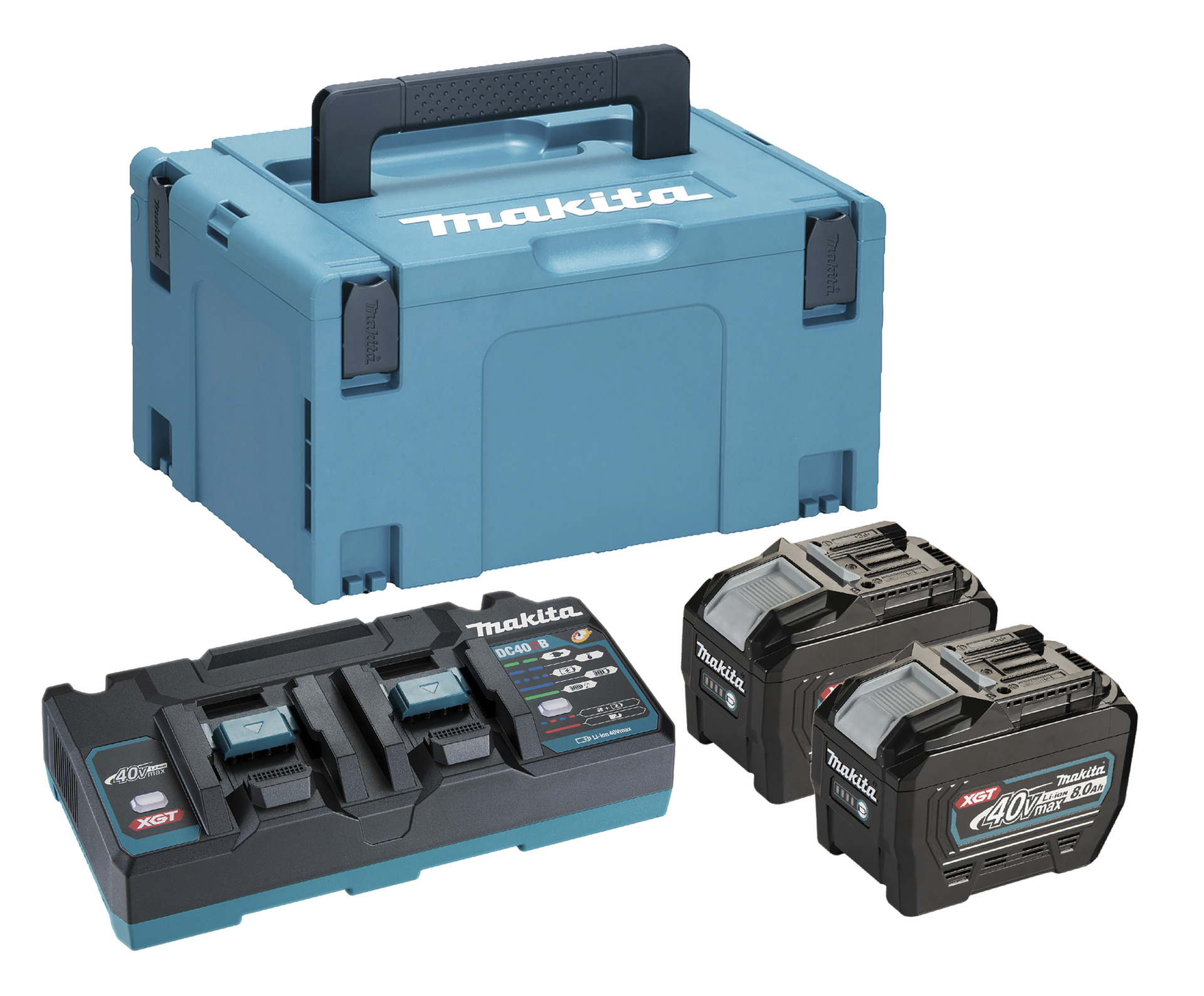 Power Source-Kit bestehend aus einem Doppel-Schnellladegerät DC40RB und zwei Akkus BL4080F 40 V max. 8,0 Ah im MAKPAC Größe 3.