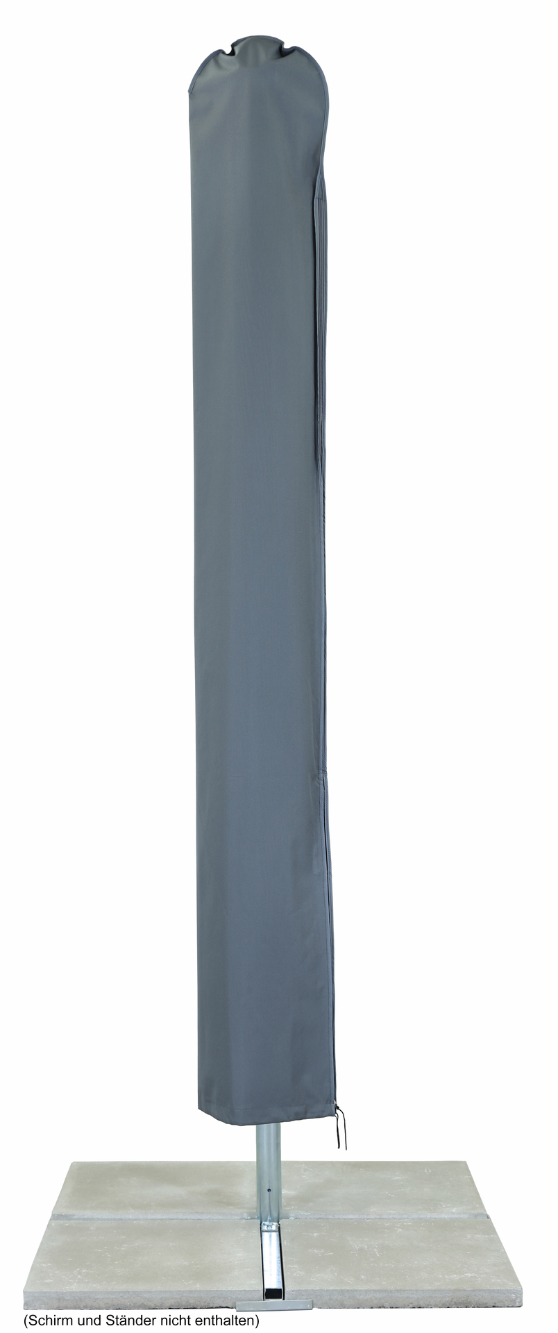 Die Schutzhülle ist lichtundurchlässig und bietet somit optimalen Schutz vor UV-Strahlung. Das Ausbleichen des Schirmes wird somit ebenfalls verhindert.