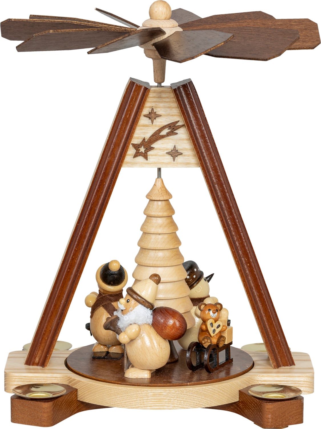 Diese Premium Tischpyramide ist ein absolutes Muss für Weihnachtsfans. Das Motiv mit Weihnachtsmann, Skifahrer und Schneemann ist einfach zauberhaft. Für 4 Pyramidenkerzen ist die Premium Tischpyramide die perfekte Wahl. Dank der 2-farbigen Gestaltung wird sie zum Blickfang auf jedem Tisch. Die Premium Tischpyramide hat die ideale Größe für jeden Raum – sie wird Sie begeistern! Artikelmaße: 24 x 18 cm
