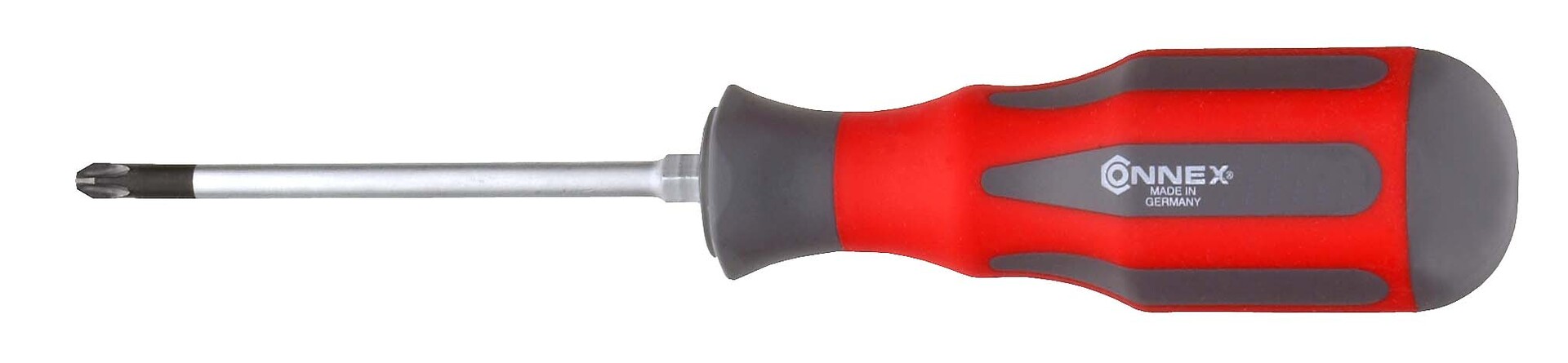 Die Profi- Schraubendreher von CONNEX besitzen durch die brünierte Spitzen größte Passgenauigkeit. Die Klingen aus hochlegiertem, zähhartem Chrom- Vanadium- Spezialstahl halten starke Beanspruchungen stand. Ihre Oberfläche ist glanz- verchromt. Die Griffe der Schraubendreher sind ergonomisch geformt und sichern höchste Kraftübertragung sowie ein optimales Umgreifverhalten für ein ermüdungsfreies Schrauben. Made in Germany.