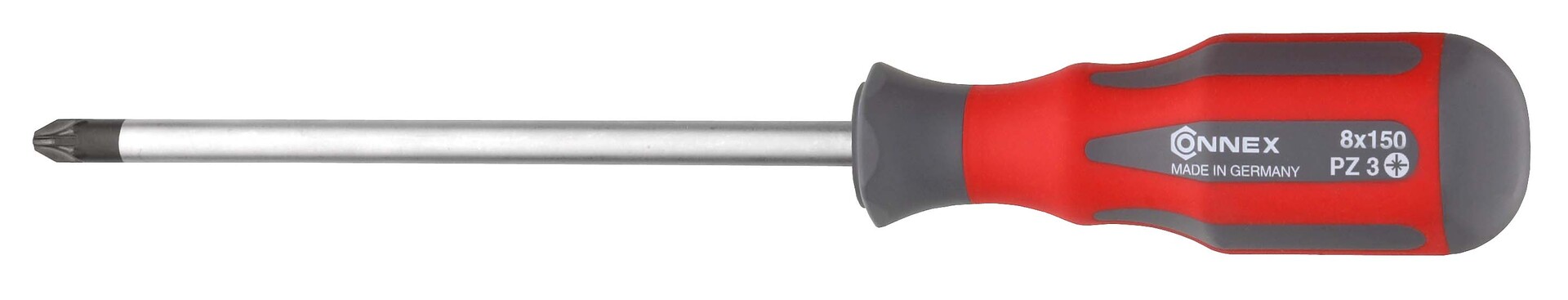 Die Profi- Schraubendreher von CONNEX besitzen durch die brünierte Spitzen größte Passgenauigkeit. Die Klingen aus hochlegiertem, zähhartem Chrom- Vanadium- Spezialstahl halten starke Beanspruchungen stand. Ihre Oberfläche ist glanz- verchromt. Die Griffe der Schraubendreher sind ergonomisch geformt und sichern höchste Kraftübertragung sowie ein optimales Umgreifverhalten für ein ermüdungsfreies Schrauben. Made in Germany.
