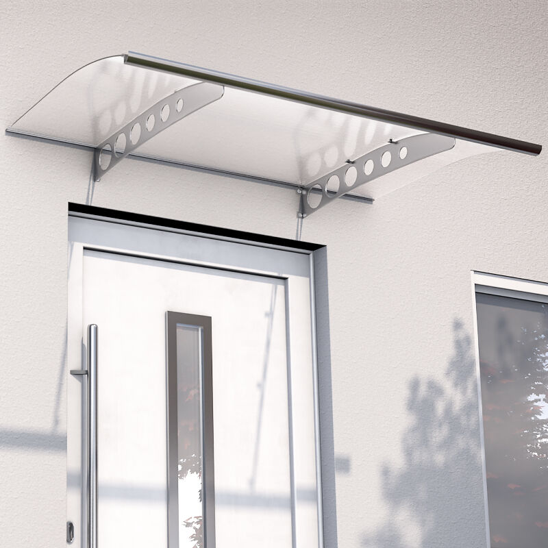 Pultvordach Braunschweig Das Pultvordach Braunschweig ist ein sehr hochwertiges und leicht gebogenes Vordach. Es ist in vier verschiedenen Breiten erhältlich. 160 x 90 x 22,5 cm (mit zwei Tragarmen) 200 x 90 x 22,5 cm (mit drei Tragarmen) 240 x 90 x 22,5 cm (mit drei Tragarmen) 300 x 90 x 22,5 cm (mit vier Tragarmen) Die Abdeckung besteht aus transparentem 4 mm starkem Acrylglas, die Träger sind aus Edelstahl und die Regenrinne und der Wandanschluss aus silbereloxiertem Aluminium. Dieser Materialmix aus hochwertigem Edelstahl, pulverbeschichtetem Aluminium und klarem Acrylglas verleiht dem Pultvordach eine hohe Haltbarkeit sowie eine edle und moderne Optik. Das Pultvordach wurde mit einer Schneelast von 75 kg/m² getestet. Passendes Montagematerial (z.B Schrauben und Dübel) für festes Mauerwerk ist bei dem Pultvordach enthalten. Optional sind auch passende Seitenblenden aus klarem Acrylglas und ein Verbindungsset für zwei oder mehr Vordächer in unserem Onlineshop erhältlich.