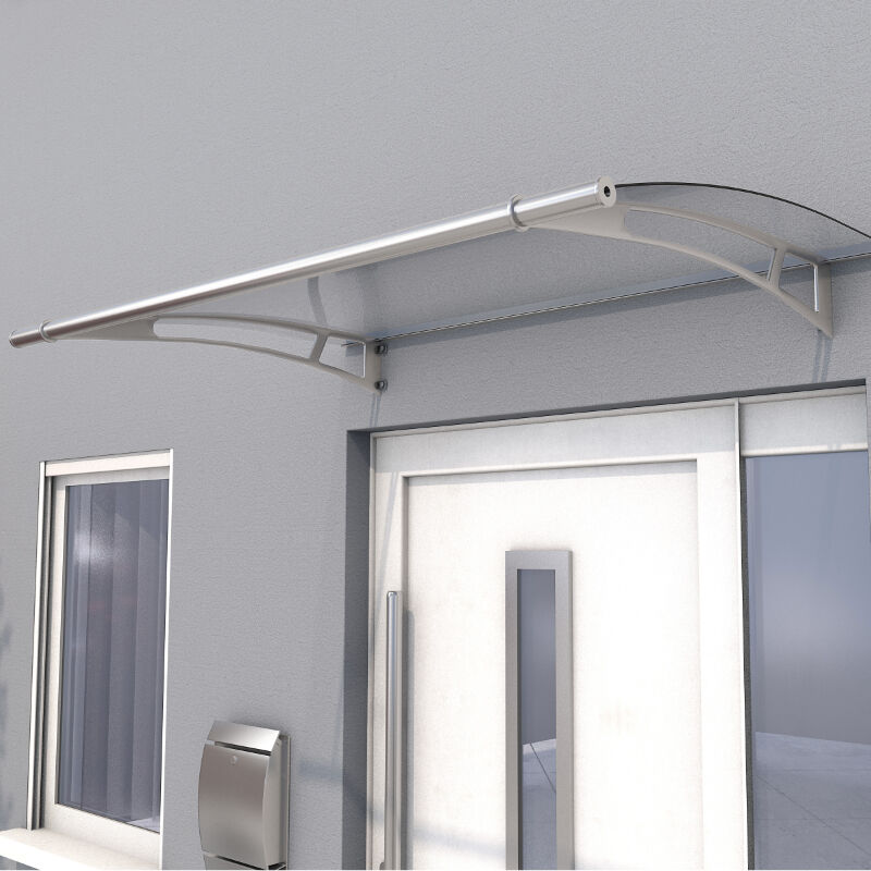 Pultvordach Wolfsburg klar Das Pultvordach Wolfsburg überzeugt mit seinen filigranen, zeitlosen Design. Die hochwertigen Edelstahlhalterungen sorgen für eine stabile Konstruktion, die in Verbindung mit einer witterungs- und UV-beständigen Acrylglasabdeckung vor schlechten Witterungsverhältnissen wie Regen, Wind und Schnee schützt. Das Pultvordach ist in vier Größen erhältlich. 150 x 95 x 17 cm (mit zwei Tragarmen) 190 x 95 x 17 cm (mit drei Tragarmen) 270 x 95 x 17 cm (mit drei Tragarmen) 205 x 145 x 25 cm (mit zwei Tragarmen) Der Rahmen ist matt und ist aus Edelstahl gefertigt. Eine Regenrinne ist beim Rahmen mit integriert. Die Abdeckung besteht aus transparentem 4 mm starkem Acrylglas. Bei dem Vordach mit den Maßen 205 x 145 x 25 cm ist das Acrylglas 6 mm. Das Pultvordach wurde mit einer Schneelast von 75 kg/m² getestet. Passendes Montagematerial (z.B. Schrauben und Dübel) für festes Mauerwerk ist bei dem Pultvordach enthalten. Optional sind auch passende Seitenblenden in unserem Onlineshop erhältlich.