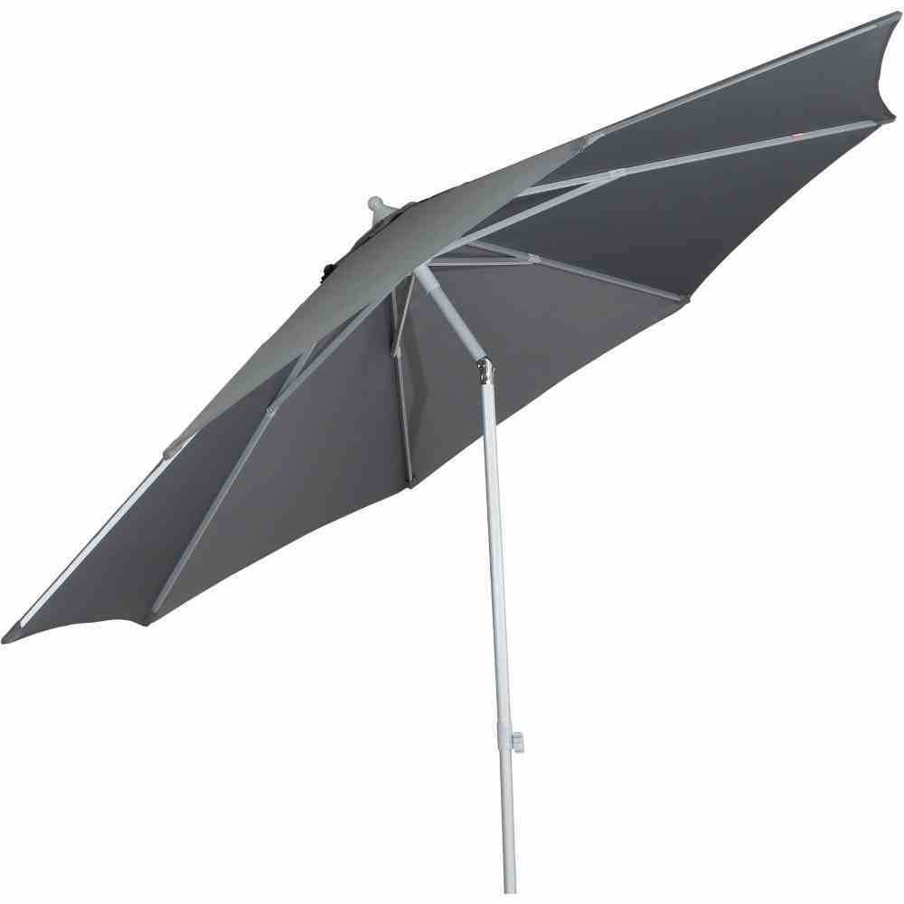 – Stoffgewicht g/m²: 180g/m², – Farbe Bespannung: grau, – Farbe Mast: silber, – Durchmesser Mast: 38/34mm, – Durchgangshöhe: 2000mm, – Material Mast: Aluminium, pulverbeschichtet, – Material Bespannung: Polyester, – Öffnungsmechanik: Push Up, – höhenverstellbar: Ja, – Schirmform: rund, – Knickbar: Ja, – UV-Schutzfaktor: UPF 50+, – witterungsbeständig: Ja, – Maße: Ø 300x250cm, – Lichtechtheit: >4