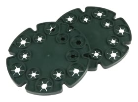 Die Scheiben sind aus langlebigem Kunststoff, mehrmals verwendbar und für Stützstäbe mit 11 mm oder 16 mm Durchmesser geeignet.