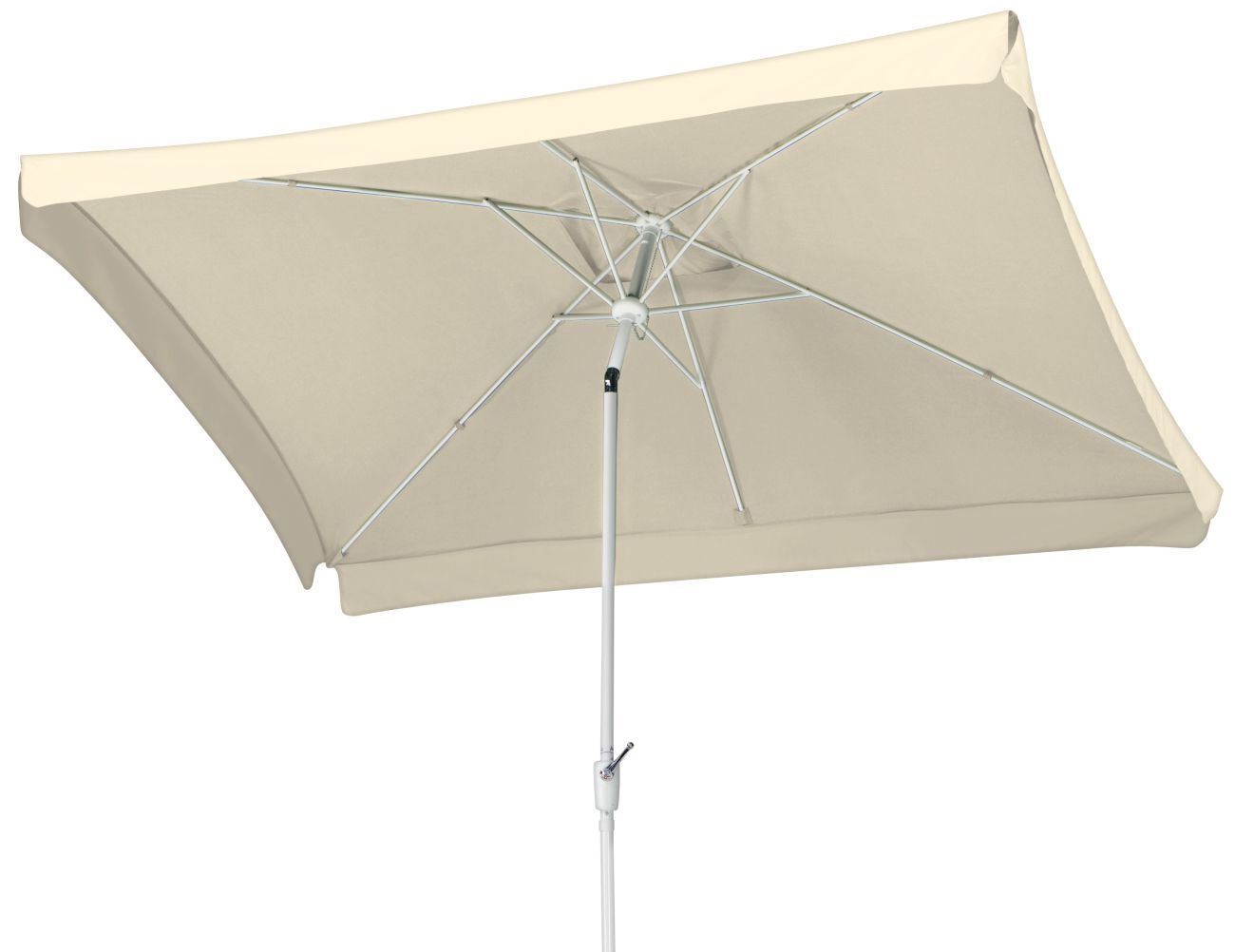 Mithilfe der integrierten Kurbel lässt sich der Schirm ohne großen Kraftaufwand Öffnen und Schließen. Darüber hinaus ist er mit einem Metallknicker ausgestattet.