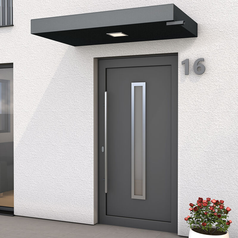 Mit dem Rechteckvordach Hamburg bekommst du einen modernen, klaren Look für deinen Eingangsbereich und gleichzeitig zuverlässigen Schutz vor Regen und Schnee. Du wählst zwischen zwei Dachbreiten, damit das Vordach optisch und technisch zu deinem Haus passt. Das pulverbeschichtete Aluminium in anthrazit wirkt hochwertig und bleibt auch bei Wind und Wetter stabil. Im Inneren dämpfen EPS Schalldämmplatten die Geräusche von Regen deutlich, sodass es am Eingang spürbar ruhiger bleibt. Das Wasser wird gezielt über einen Wasserspeier abgeführt und du entscheidest dich dabei für eine linke oder rechte Variante, je nachdem wie es bei dir vor Ort am besten passt. Für gute Sicht sorgt die integrierte LED Beleuchtung in neutralweiß, damit du auch in der dunklen Jahreszeit sicher zur Tür kommst. Das Montagematerial für festes Mauerwerk ist bereits dabei, damit du direkt loslegen kannst. Aktualisiert: Februar 2026 Technische Daten Maße (B x T x H): 160 cm x 90 cm x 14,5 cm | 200 cm x 90 cm x 14,5 cm Entwässerung: Wasserspeier links | Wasserspeier rechts Farbe: Pulverbeschichtet anthrazit matt Material: Außenmaterial Aluminium | Dachelemente mit eingebauten EPS Dämmplatten Inhalt des Vordach-Sets: Dachelement | Wasserspeier | Montagematerial für festes Mauerwerk Schneelast: bis zu 100 kg/m² Beleuchtung: LED Panel LED-Panel Maß: 16,5 cm x 16,5 cm Rahmenfarbe LED-Panel: Chrom matt Leistung LED: 7,2 Watt (4000 K Neutralweiß) Irrtümer oder Änderungen vorbehalten.