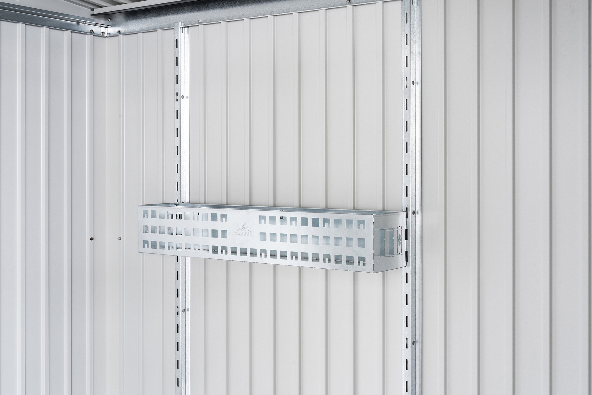 Die Regalkörbe werden in 2 Regalsteher eingehängt. Ideal zum Aufbewahren von Pflanzenschutzmittel, Rasensamen, Dosen und Werkzeug.