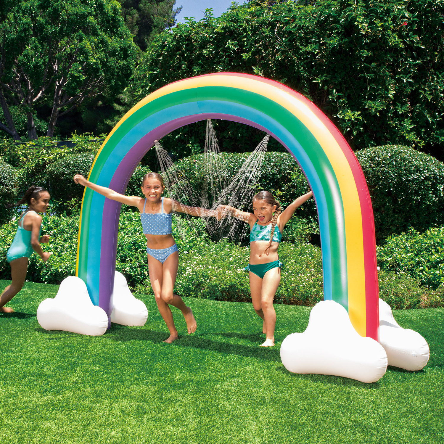 Summer Waves aufblasbarer Wassersprinkler, Kinder Garten Wasserspiel, Regenbogen bunt, 251x79x190 cm