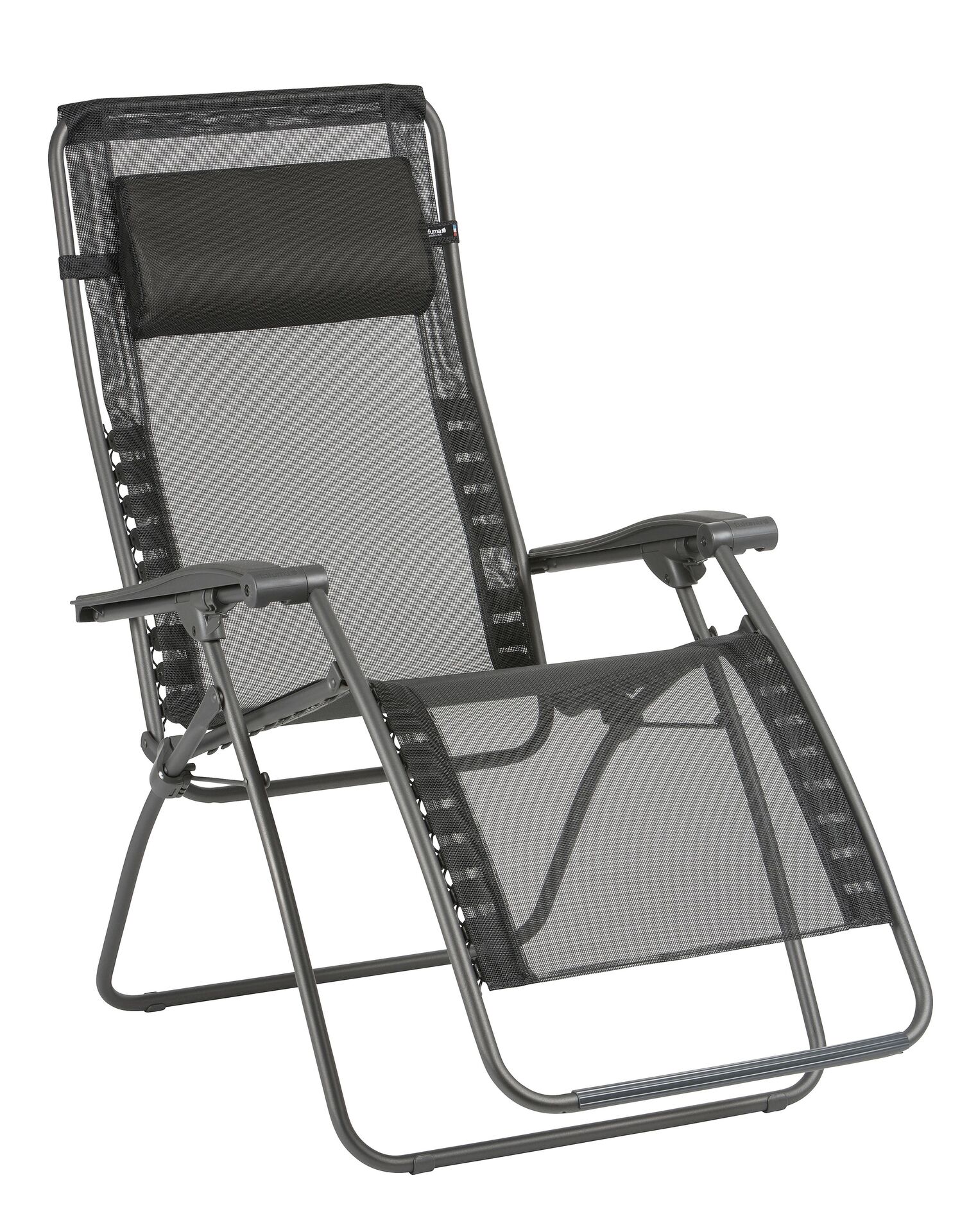 – Farbe Bezug: schwarz, – Gestellfarbe: titane, – Gewicht: 7,2, – Maße: zusammengeklappt: 96 x 68 x 15cm offen: 115 x 6cm, – Material: Gestell: HLE Stahl, – Max. Belastbarkeit: 140kg, – mit Armlehnen: Ja, – Produktart: Relaxsessel, – witterungsbeständig: Ja, – zusammenklappbar: Ja