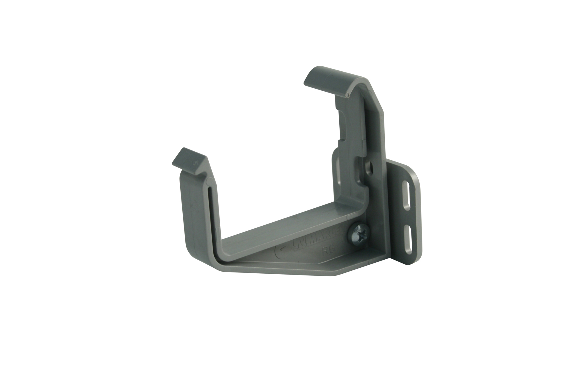 Der verstellbare Dachrinnehalter wird im Abstand von 50 cm zum nächsten Halter am Stirnbrett befestigt. Die folgenden halter werden an einer Richtschnur ausgerichtet und am Strinbrett befestigt. Der Rinnenhalter kann um 25° in der Neigung verstellt werden.
